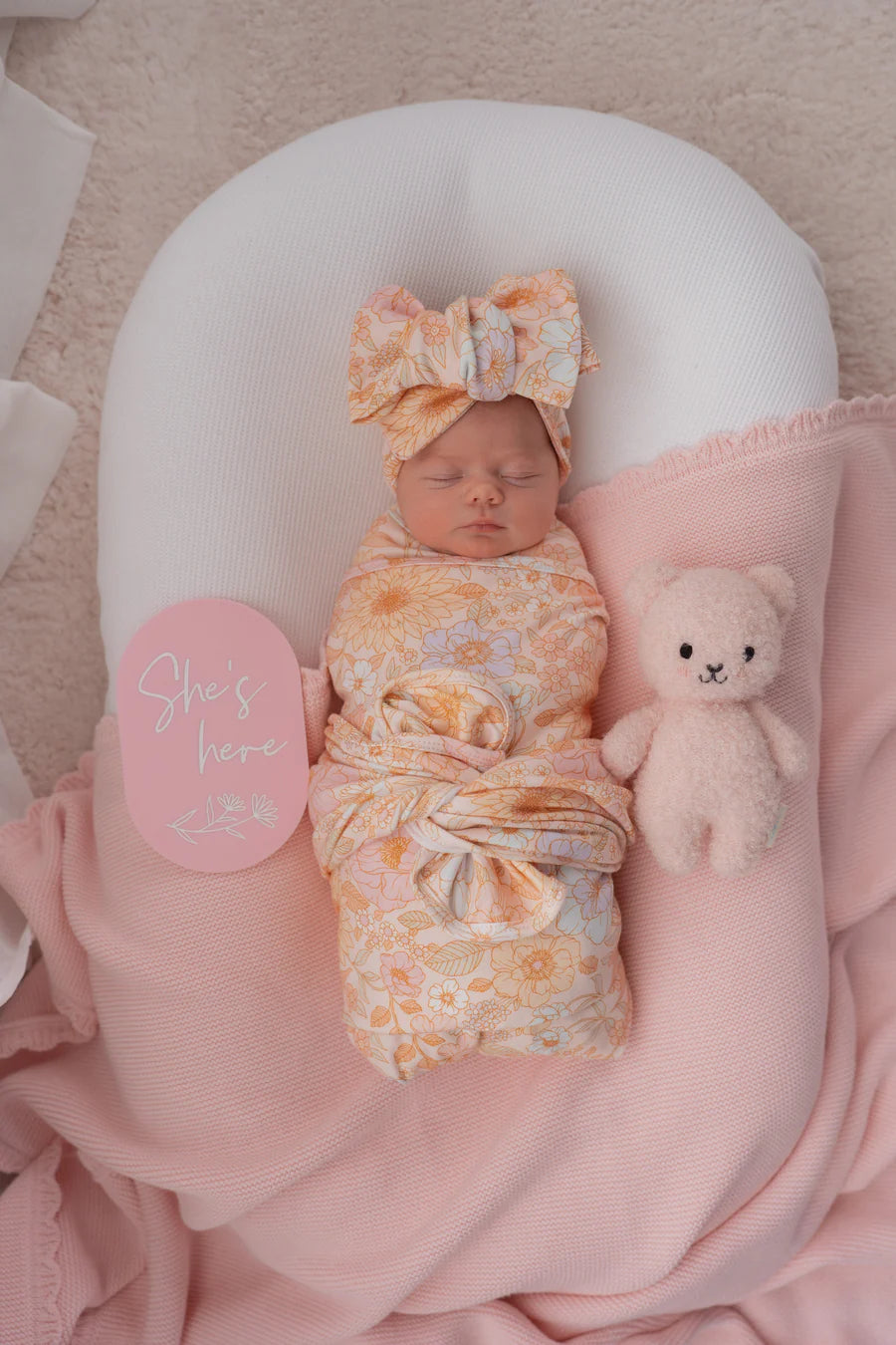 Swaddle Blanket Set - Pastel Bloom (Swaddle Blanket & Bow Headband)